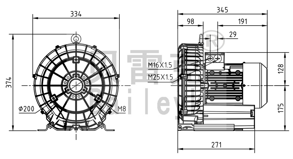 最大風(fēng)量:210m3/h 最大正壓:270mbar 最大負(fù)壓:220mbar 防護(hù)等級(jí):IP55 噪音:64db 重量:26Kg