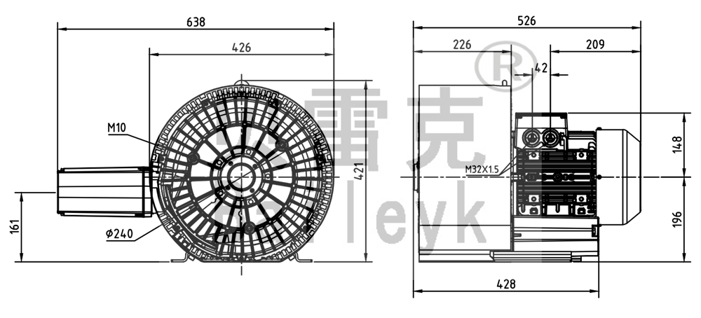 最大風(fēng)量:320m3/h 最大正壓:380mbar 最大負(fù)壓:360mbar 防護(hù)等級:IP55 噪音:73db 重量:56Kg
