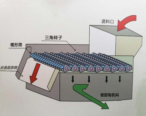 餐廚垃圾收集起來以后,里面的成分非常復(fù)雜,常;烊胨芰洗⒉A、餐具、廚具、瓶蓋、紙盒等雜物。為保證后續(xù)設(shè)備正常運(yùn)行、產(chǎn)品的穩(wěn)定性,需要對原料進(jìn)行有效分揀。所以這些雜物必須處理掉,原來處理這些雜物使靠人工來篩選,人工篩選帶來很多問題,①人工篩選需要有篩選平臺;②要有篩選工具;③不衛(wèi)生,不環(huán)保;④沒辦法滿足現(xiàn)狀的需求。